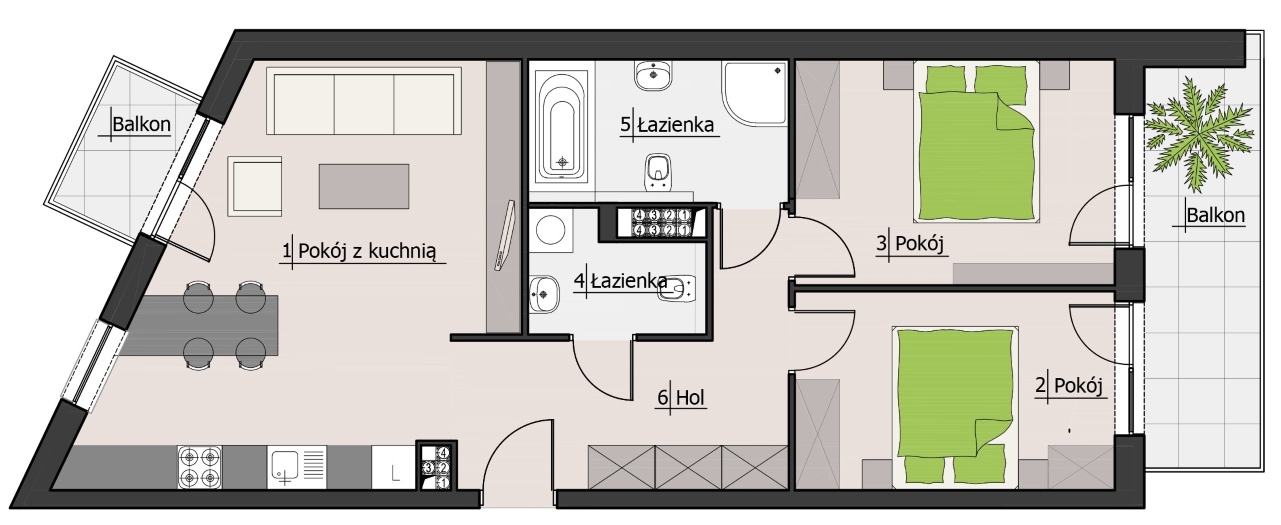 - balkony (6,27 m2 oraz 2,46 m2)