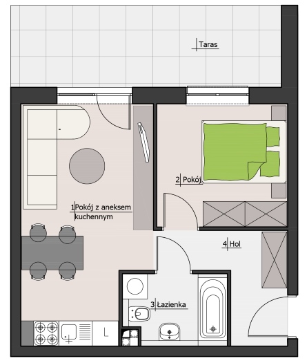 Nowoczesne mieszkanie z tarasem, usytuowane w centrum Łodzi na osiedlu Nova Lipova (budynek B1).
