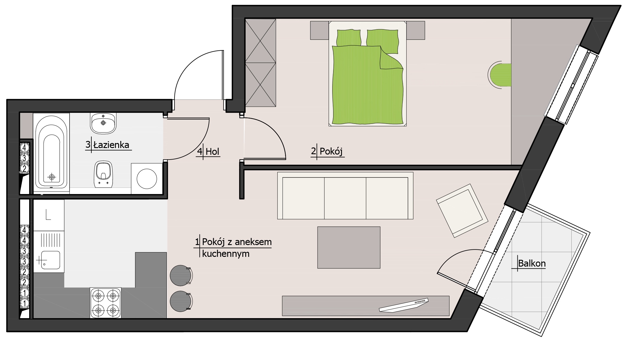 Przestronne mieszkanie dwupokojowe, idealne dla singli i par, usytuowane w centrum Łodzi na nowoczesnym osiedlu Nova Lipova.